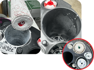 Das Bild zeigt Rollen nach über 3 Monaten in unserem FarbRollenEimer.