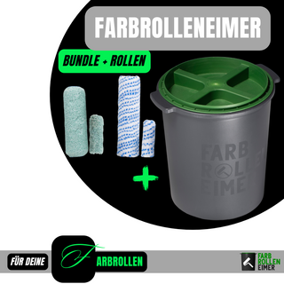 Unser Farbrolleneimer bietet Platz für drei kleine und drei große Farbrollen, was Ordnung und Effizienz in Ihrem Arbeitsbereich garantiert.